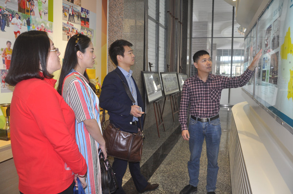 泰国博仁大学社科与传媒学院院长顾皓首先参观了校史馆,了解了学校31年的办学历程及成果。随后,他们还参观了数字媒体工程中心、汽车实验室、智能制造工程中心、
