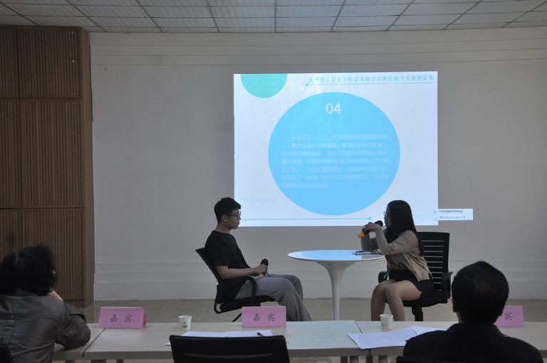 为深入贯彻党的十八大精神,落实我校十三五规划,推动我校辅导员职业化、专业化发展,提升辅导员的职业能力和工作水平。12月6日至12月20日,学校举行首届辅导员职业能力大赛。本次大赛分个人赛和团体赛,个人赛包括基础知识测试(内容涵盖思政工作、奖助贷、心理健康、就业创业、时事政治,突发事件、学生违纪、校情校史等及博文写作)和学生信息辨识(包括学生姓名、班级、宿舍号、家庭地址、家庭经济情况、学习情况6个方面)。团体赛四个院系各派4名代表参加学生工作展示、学生谈心谈话、案例分析、主题教育活动、即兴演讲五个项目的比赛。
