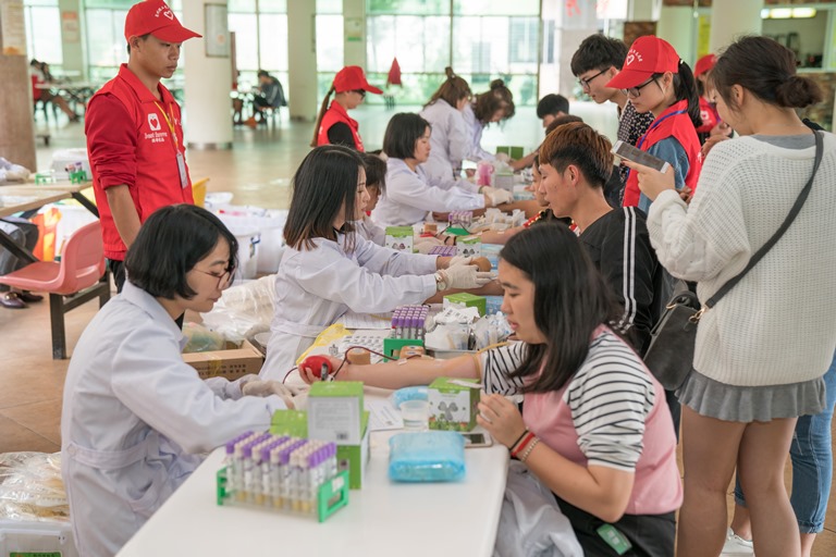 在学校食堂一楼,泉州中心血站的献血车格外醒目,前来献血的同学们正井然有序地排着队,填表格,而早到的同学则已经在献血点采集血液。来自16报关班的陈思妤也来参加献血,她告诉说,听说献血对身体好,就约了同学过来一起献血。希望能够帮助到需要的人。“献血是一种义务,是一种社会责任,我们作为当代大学生,必须去履行义务,负起责任。”一旁王美凤同学说。