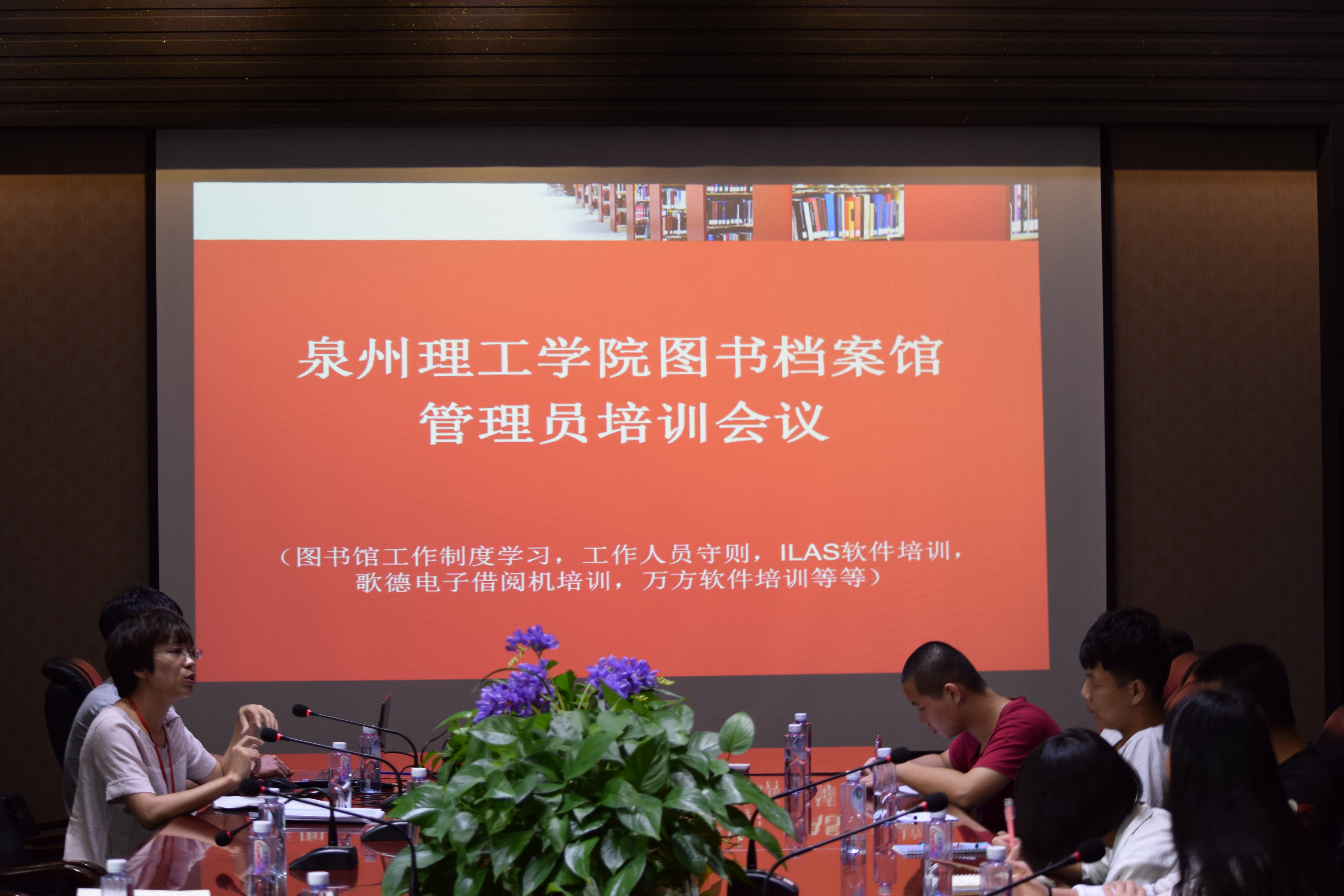 泉州理工学院图书档案馆于2016年10月22日在主楼一楼会议室召开2016-2017学年第一次工作会议暨馆员培训会议,取得圆满成功。会议由图书档案馆郑春梅副馆长主持,特邀学校于雷副校长和吴璐吟副董事长莅会指导。会议主要分为以下议程: