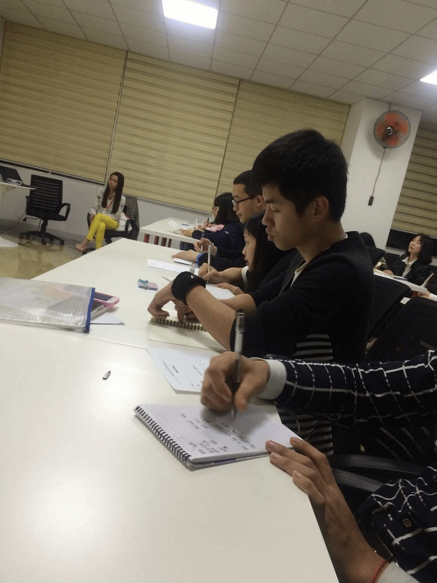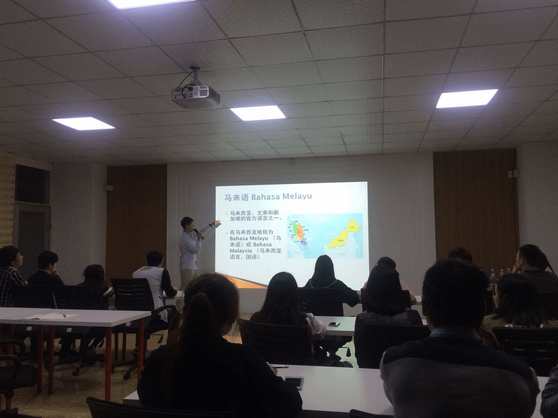 紧接着,在两位留学生活泼且用心的引导及分享下,气氛很快就变得十分热烈。本次活动无关课程、没有学分,但参与的学生们均表现出积极的学习态度与高度的学习热忱,过程中不仅专心听讲、记笔记、提问题,中间休息时间还持续和留学生们探讨交流,甚至在下半场开始时的自我介绍以及课后学生们的微信群交流中,已经将上半场学会的马来语单词现学现用。