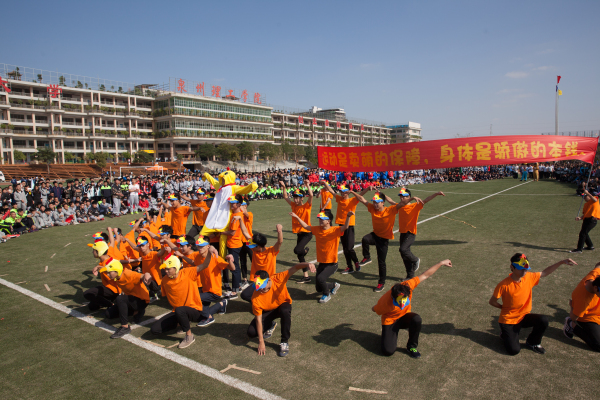 个院(系)各自组成表演方阵进行展示,他们用集体舞蹈的方式展示出理工学子的运动风采。