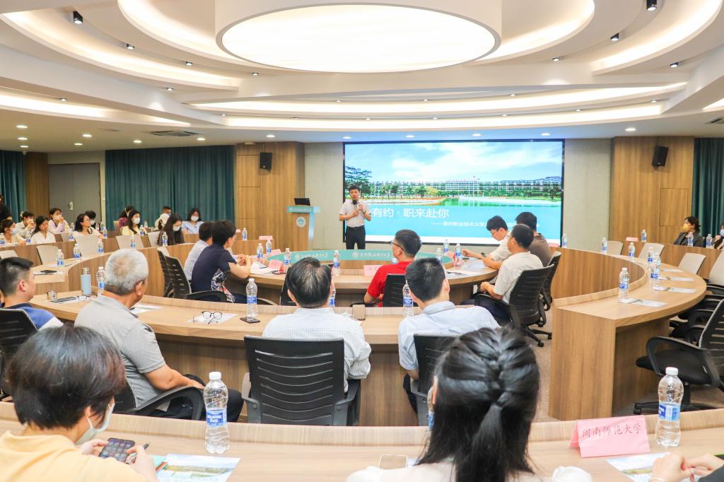 5月17日下午,“泉大有约,职来赴你”泉州职业技术大学2023年校园招聘宣讲会,在学校国际会议厅举行。70位来自泉州师范学院、华侨大学的研究生毕业生,由老师组织前来参与,同时,还有来自集美大学、闽南师范大学的研究生应邀参加。泉州师范学院研究生处党总支书记林蕙琼、研究生辅导员赖鸿、吴亦伦,华侨大学就业指导中心老师贾玮、外国语学院辅导员李守超等应邀出席,我校党委副书记、副校长蔡金佩,副校长林文艺,校长助理王巨斌以及有关部门和二级学院负责同志参加宣讲会。