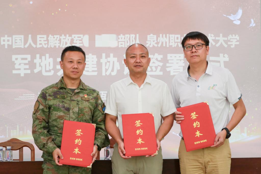 6月30日,我校与晋江市退役军人事务局、中国人民解放军某部军地三方共建协议签署仪式在部队举行。仪式上,副校长林文艺代表学校与部队签订共建协议,双方将重点围绕党建、红色教育、技术交流、技能培训和环境改造等方面开展共建活动。