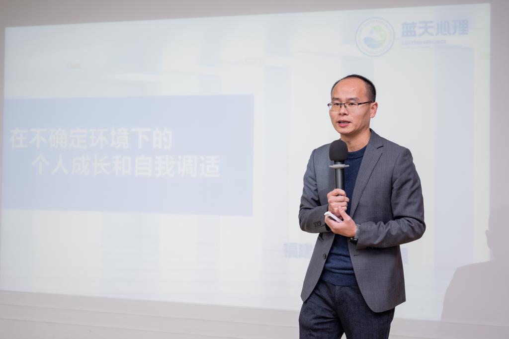 会议最后,邀请了福建蓝天瑞格心理执行主任骆深渠为大家作《在不确定环境下的个人成长和自我调适》专题讲座。