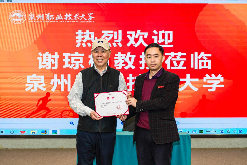 随后,谢琼桓教授为教育学院体育专业师生开展了“百年来体育潮流的基本走向”专题讲座。讲座开始前,傅志雄为谢琼桓教授颁发泉州职业技术大学客座教授聘书。