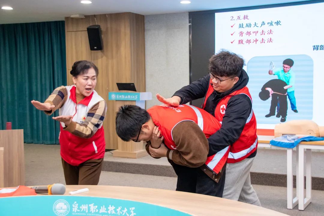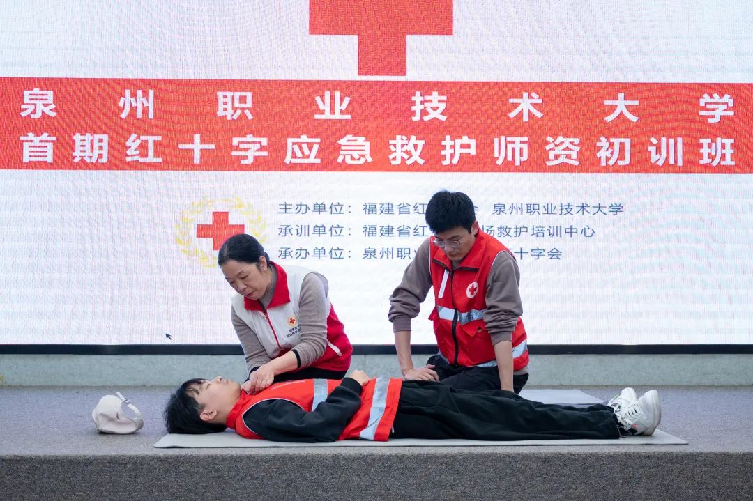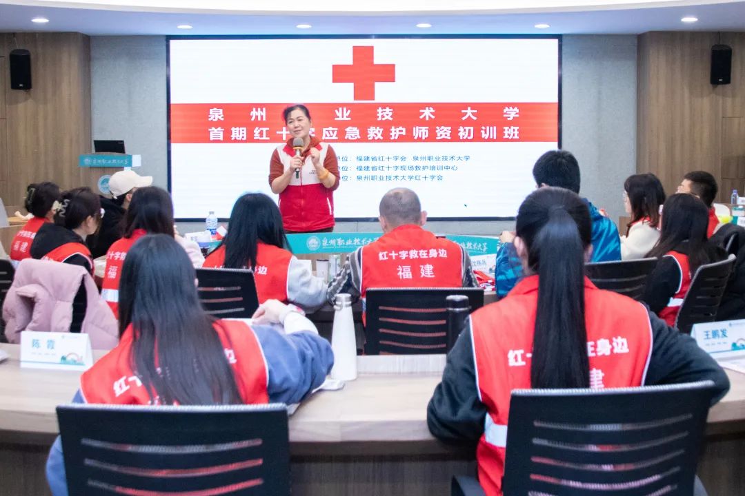 1月16日至21日,泉州职业技术大学联合福建省红十字会举办首期红十字应急救护师资初训班。福建省红十字现场救护培训中心主任刘雅萍带领优秀师资团队到校授课,来自学工系统、教育学院、终身教育学院的39名教师学员参加培训班。