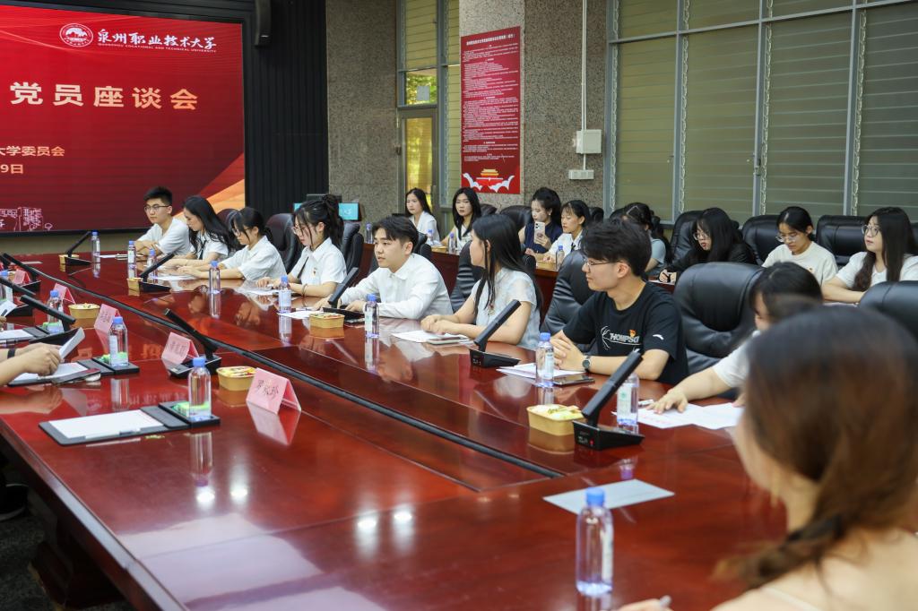 6月29日上午,泉州职业技术大学2024届毕业生党员代表座谈会在第一会议室召开。学校党委书记傅志雄,党委职能部门负责人、各书院党总支书记以及53名毕业生党员代表参加座谈。