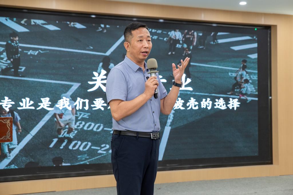 随后,新道科技股份有限公司总部教育服务总监王万德以“青春向上 破壳成长”为主题,带来数智财经产业学院的开班讲座。王万德以自己的求学经历及专业发展现身说法,向同学们介绍了专业发展的趋势,以及坚持求学更新自己的必要性。他以“我们要学习什么”和“我们要怎么学习”为切入点,要求同学们要学力量、学精神、学榜样、学本事,更要转变学习理念、变革学习方式、切换学习视角、改变应对社会环境的方式。最后,他殷切期盼同学们在产业学院的培养下茁壮成长。