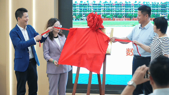 张建军、苏康敏与刘莉、罗永官共同完成数智财经产业学院揭幕仪式,产业学院在众人期待中隆重成立。