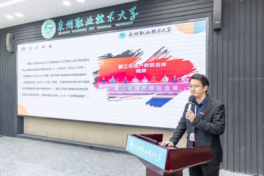 最后,黄永东强调,市政府对晋江市域产教联合体高度重视,在县域范围内实现现代职业教育体系的完整构建与贯通培养具有重大意义,希望各单位团结一心,以晋江市域产教联合体为平台载体,以中本贯通培养项目为着力点,为晋江产业服务赋能,积极推动产教融合纵深发展。