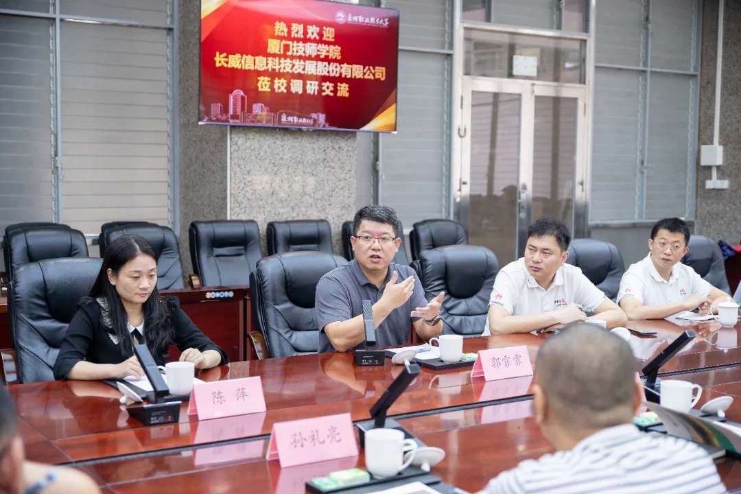 10月23日,厦门技师学院党委委员、副院长赵广平,长威信息科技发展股份有限公司智算运营中心总经理马鹏程分别带领校企双方人员,莅临泉州职业技术大学参访调研,我校副校长、联合创新产业学院院长郭霏霏等陪同调研。