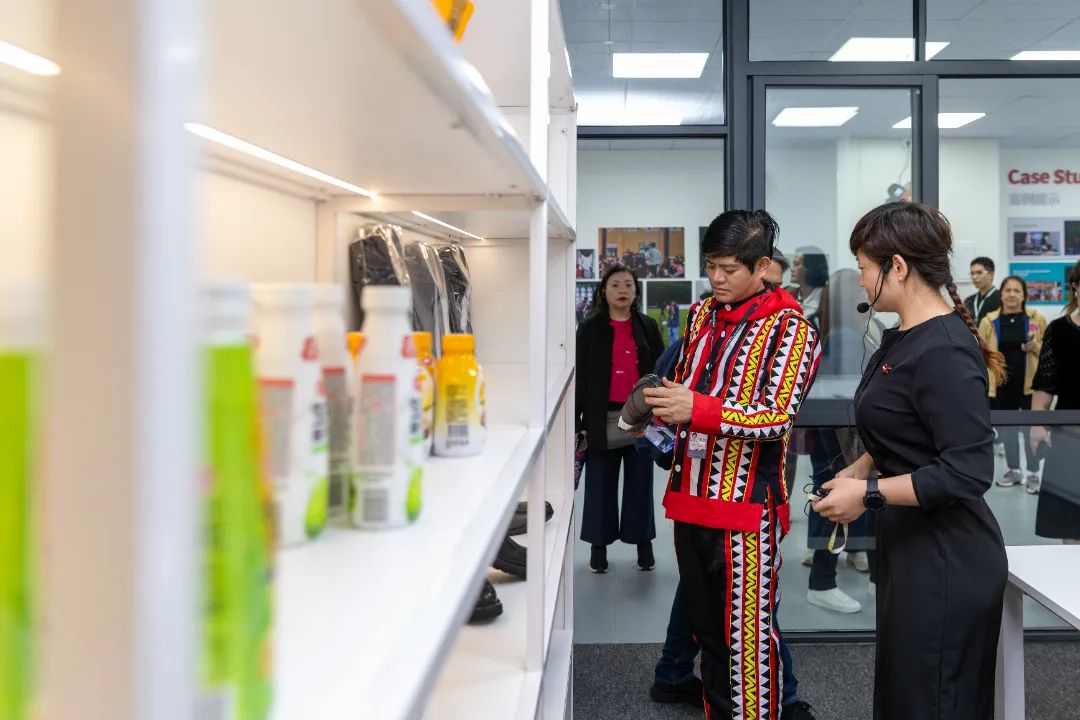 维达尔·维利亚努埃瓦一行现场调研我校建设与发展历史,考察了新能源汽车产业学院、福建省乡村振兴直播产业基地、艺术设计展厅、数智产教融合展厅等,并详细了解我校“职教出海”、产教融合方面的做法和成效。