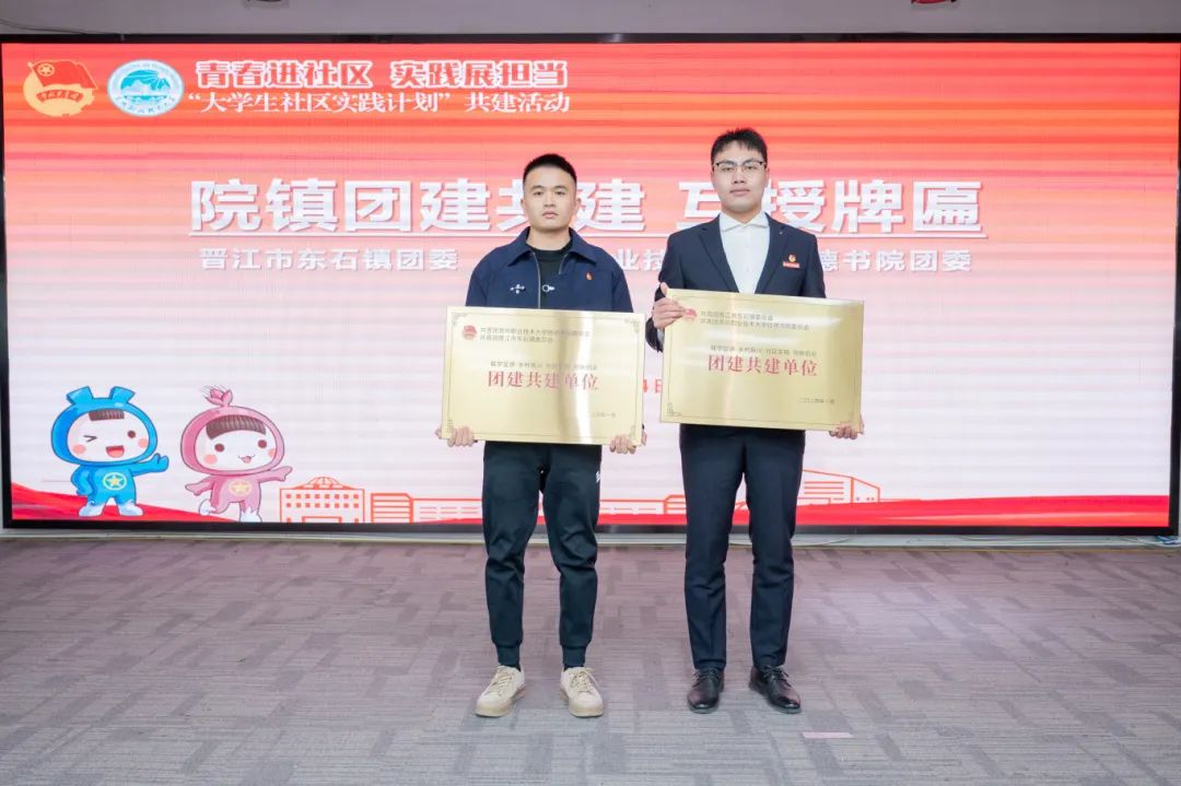 泉州团市委副书记傅漪,晋江团市委书记陈孟哲、副书记王思思、组织部部长黄伊媚,我校党委副书记/副校长蔡金佩、党委学生工作部副部长朱冰梅、校团委书记黄胤聪,参与共建的六个镇街团委负责人、村/社区团支部代表以及我校六大书院团委负责人和受聘任的优秀学生骨干代表参加共建活动。本次活动由我校团委副书记曾子石主持。