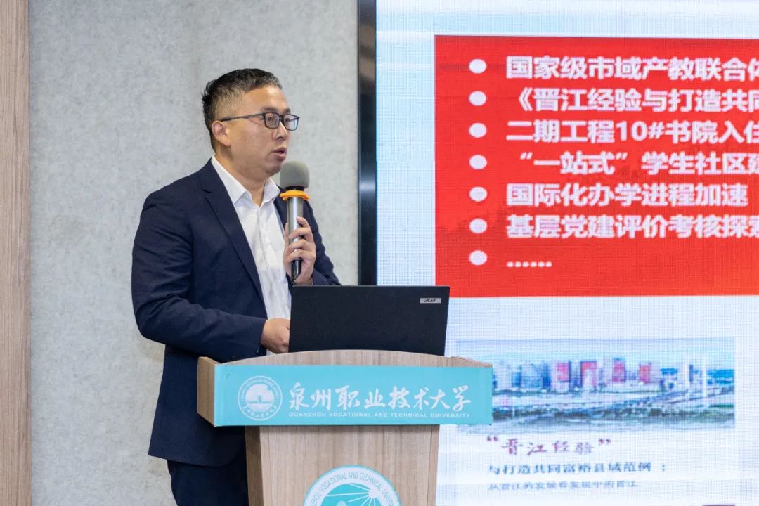 二是充分理解学校的战略目标,全面落实推进国家“一体两翼”职业教育改革,不忘与城市共生共荣的办学初衷,依托晋江强大的产业优势,紧跟产业步伐,在市域产教联合体的平台上深入探索现代职业教育体系,积极推进中高本贯通、加强与高水平大学的链接与合作,每个学院要像八爪鱼一样伸出触角,整合各方资源寻找跨学科合作的方式服务企业需求,真真正正地在晋江落地生根,探索职业教育服务区域经济发展的“晋江模式”;