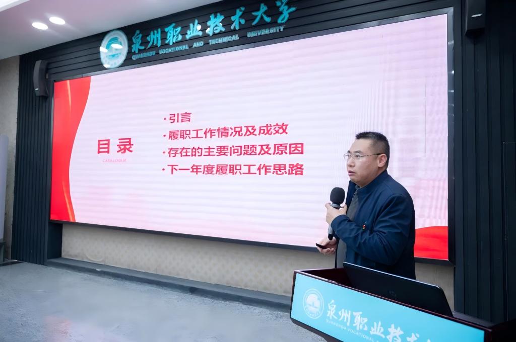 述职评议会采取现场述职、点评和民主测评方式进行。会上,19位二级党组织书记全员现场述职,围绕基层党建重点任务汇报履职措施和主要成效,分析存在问题和原因,围绕学校中心工作,汇报2024年工作计划。与会校领导逐一点评,肯定成绩亮点,指出短板弱项,对进一步做好基层党建工作提出要求。过去一年,全校各基层党组织坚持以习近平新时代中国特色社会主义思想为指导,主题教育开展扎实,基层党建工作更加扎实,特色亮点更加凸显,在课程思政、队伍建设、产教融合、学生成长成才、社会服务等方面成效显著,获批教育部首批国家级市域产教联合体、工信部根技术联合创新人才培养产教融合基地,入选省高校巡礼典型案例、第六届全国民办高校党建和思想政治工作优秀成果、全国职业院校党委书记论坛优秀案例等;入选省级产业学院试点、省级乡村振兴直播产业基地、市级产教融合专业群等,省“双带头人”教师党支部书记工作室通过验收,3个支部推荐申报全国党建样板支部;获省职业教育专业带头人、省优秀教育工作者、市优秀思想政治工作者、市名师工匠等荣誉。基层党组织政治功能和组织功能不断增强,有力引领和保障学校改革发展。