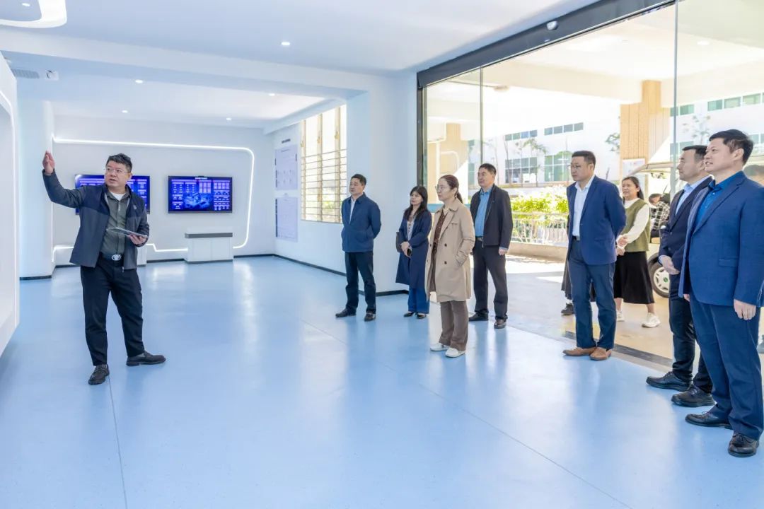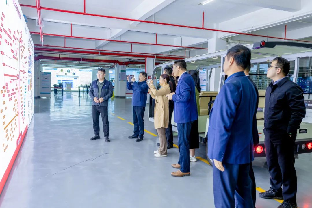 座谈会前,调研组一行参观了我校生态校园沙盘、艺术传媒学院、联合创新产业学院、新能源汽车产业学院等,实地了解我校在产教融合实践中的硬件设施与教学成果。