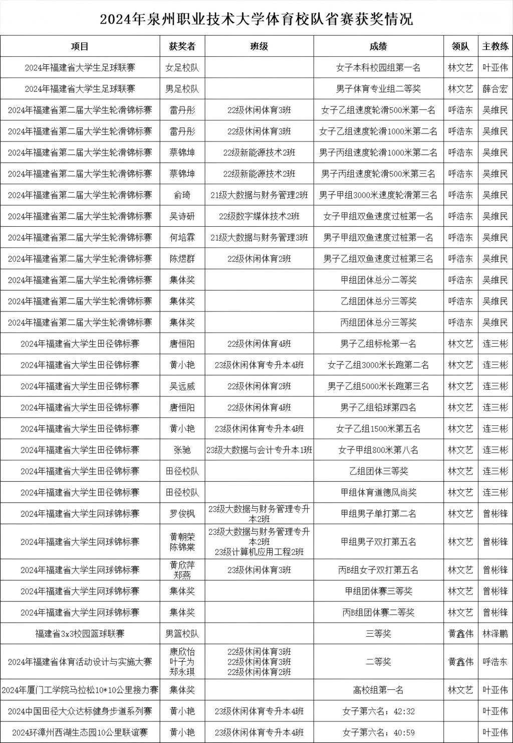 今年初以来,学校师生积极参加各类、各级体育赛事,奋勇争先,捷报频传,一起来看看泉大健儿的战绩: