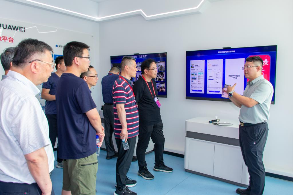 来宾先后参观了环境认知与智能系统实验室、数智产教融合展厅,鸿蒙、昇腾实验室,金鸿、泉大智行公司等,深入了解我校的办学特色和华为全国人才培养示范样板点的建设模式与成效。