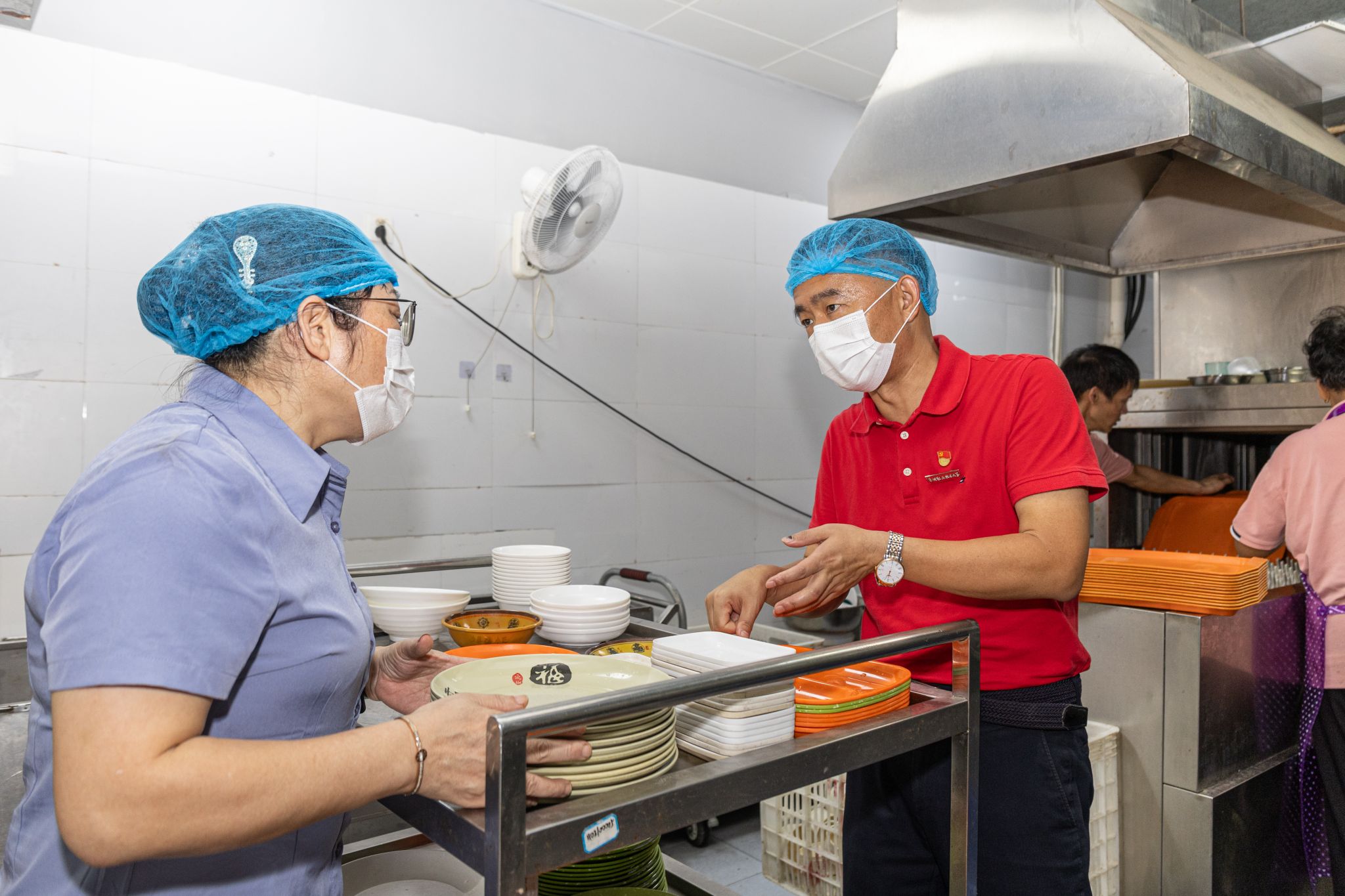 随后,傅志雄一行深入学校食堂后厨,实地察看环境卫生、食材储存、加工流程等关键环节,仔细询问食品安全管理制度落实情况,并结合前期学生会“食堂满意度调研”收集的学生意见,向食堂管理方反馈学生关切的问题。