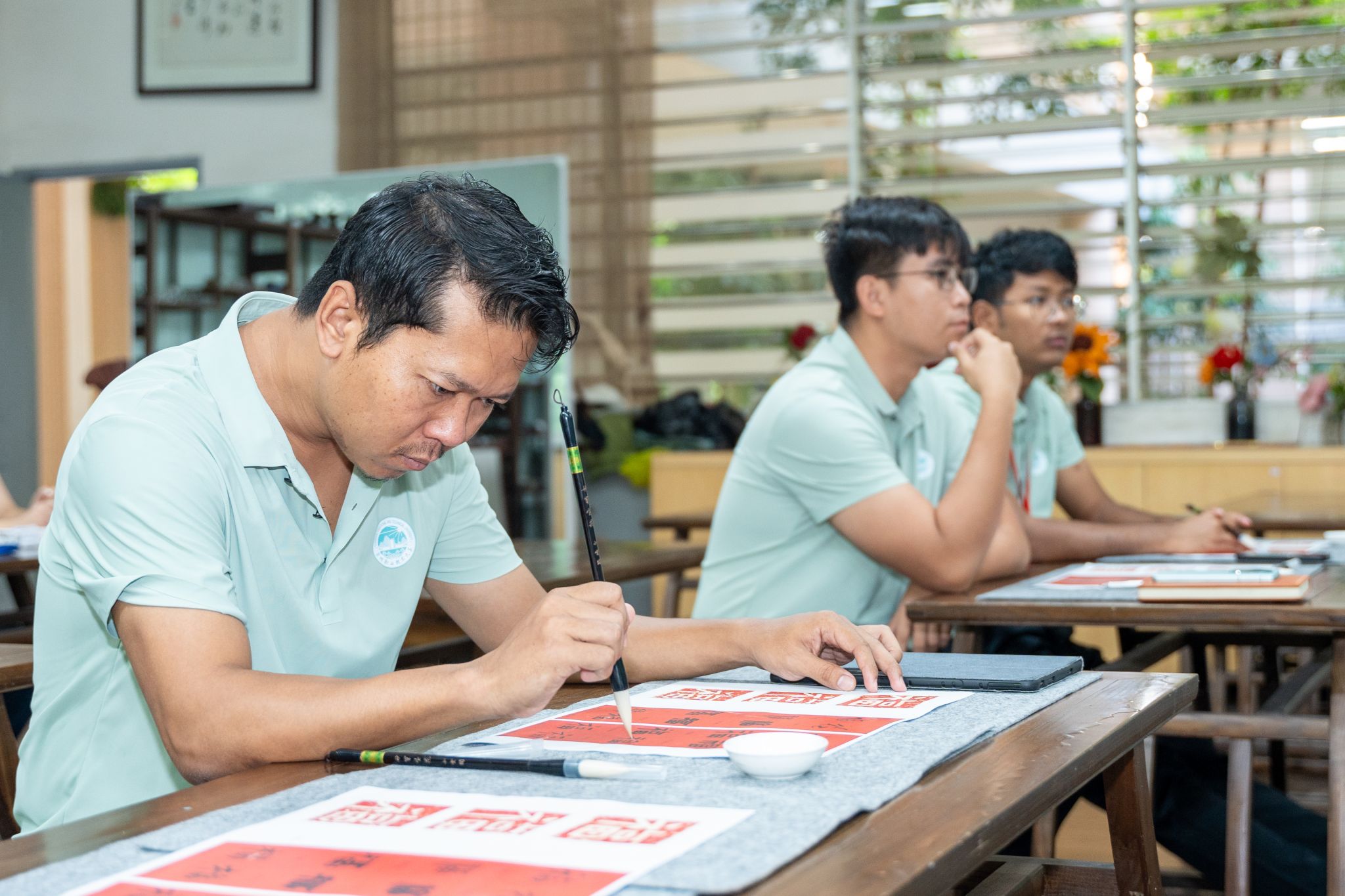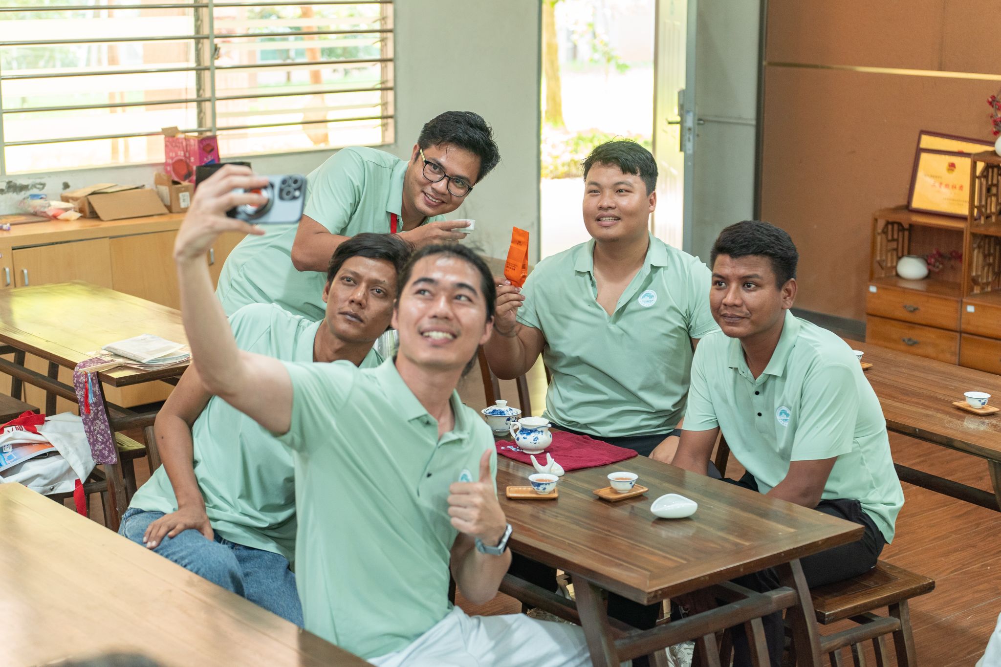在结业仪式上,播放的学习生活小视频,再现了一个月来的温馨瞬间。书法课上,学员们握着毛笔一笔一画写下“福”字,举着作品拍照说“要带回缅甸给同事看”;茶文化课上,他们学会泡茶后,第一杯先递给同学;文体活动里,大家默契配合玩游戏,羽毛球场上大家为彼此的球技呐喊加油……