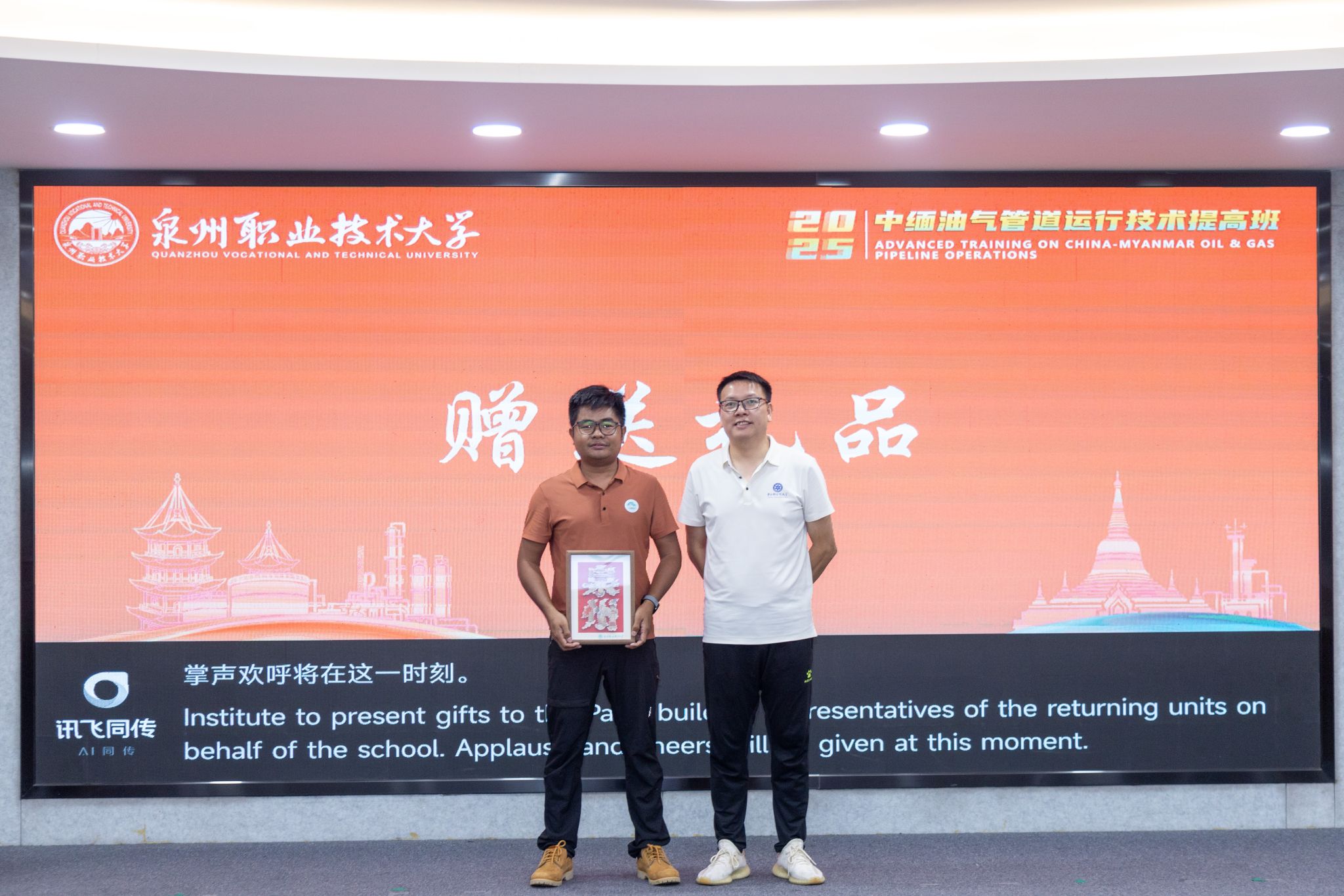 当林文艺将具有泉州特色的礼物赠送给送培单位代表时,仪式达到高潮。这份礼物,象征着中缅两国在油气领域合作的延续。