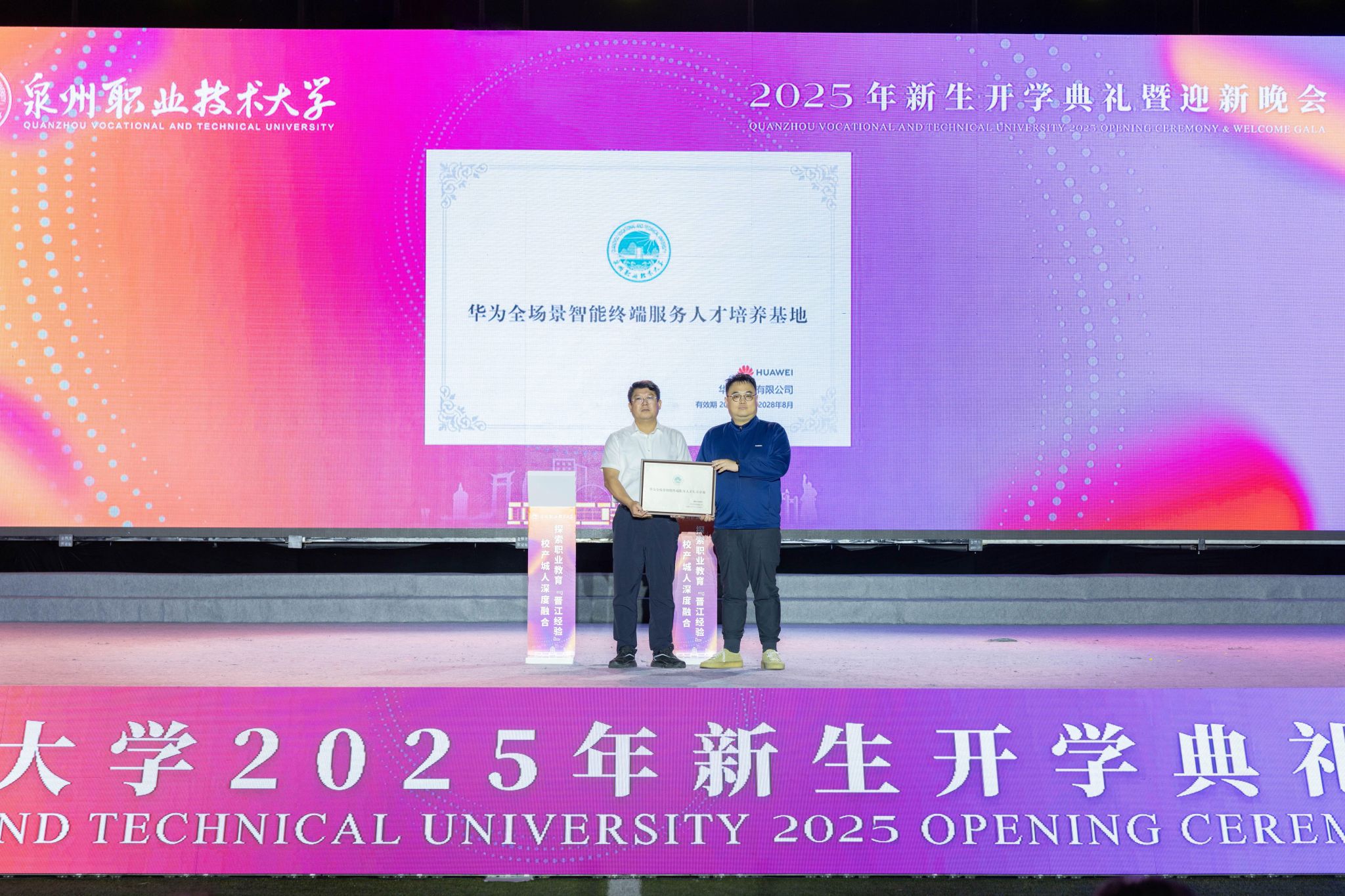 ▲ 华为福建终端业务部服务总监段璨为我校授牌