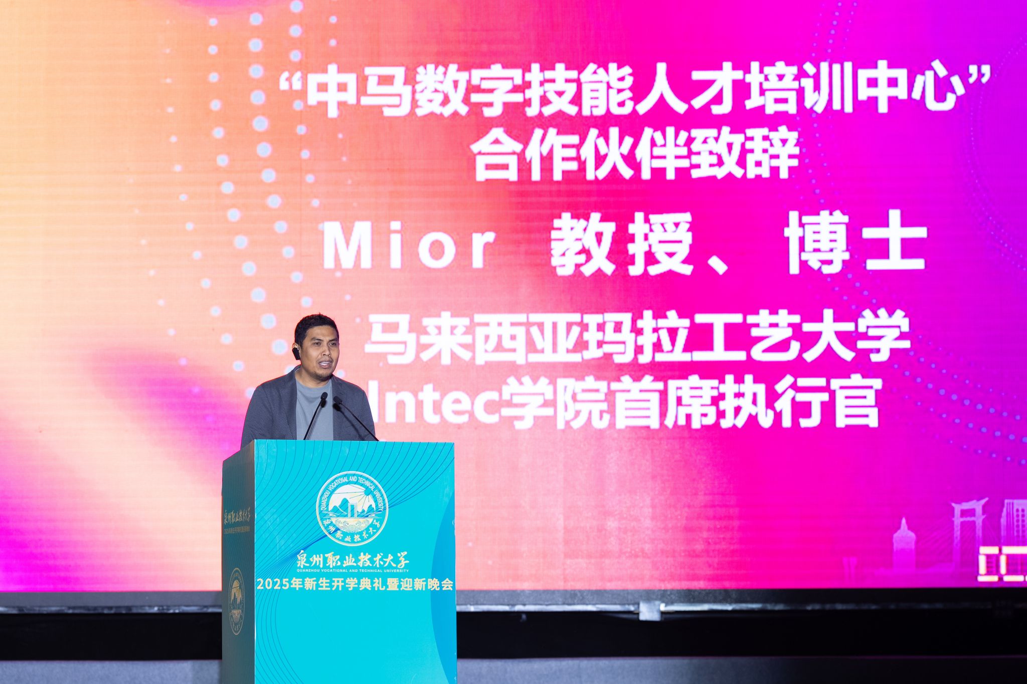 他提到,泉州职业技术大学与玛拉工艺大学多个校区已建立多层次合作,INTEC学院已投入资金建设人工智能实验室,并计划明年初全面启动共建“中马数字技能人才培训中心”。他强调,“这段合作关系之所以能够如此迅速地取得成果,是因为QVTU和我们有着共同的愿景和相同的步伐,我们相向而行,怀着共同的雄心壮志,致力于为数字教育设立新的标杆。”