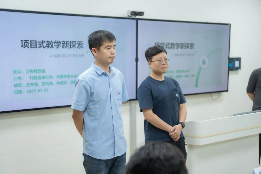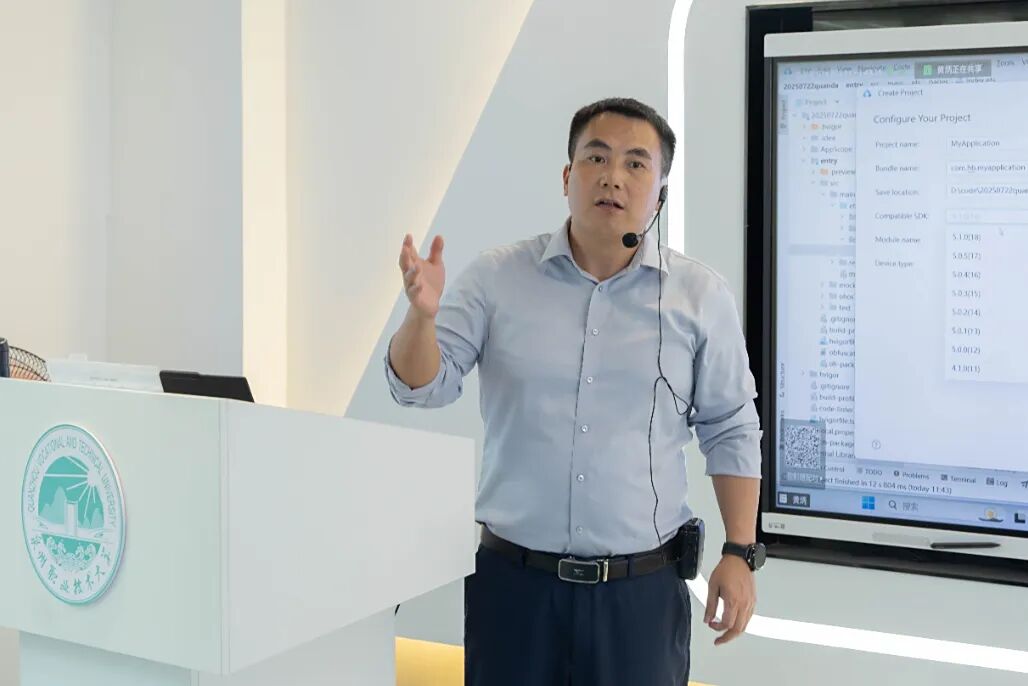 奇安信高教合作中心总监李向辉深度剖析网安领域人才协同培养路径;华为高级讲师们以项目式教学为载体,带领全院教师完成鸿蒙与人工智能技术项目实战教学,并组织答辩与复盘。