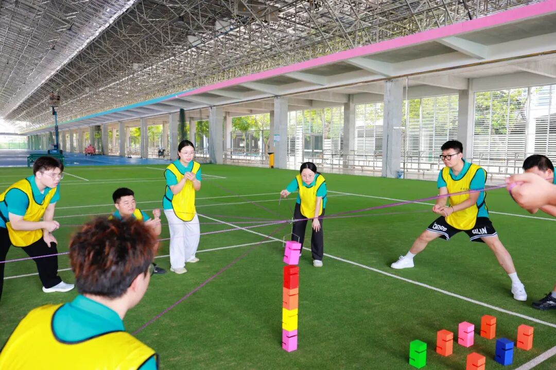 教师们通过主题通关打卡及素质拓展项目,体验团队从磨合到默契的全过程。素质拓展教练全程观察引导,强调“不落下任何一名成员”的团队理念,培养一支具有战斗力的快乐团队。