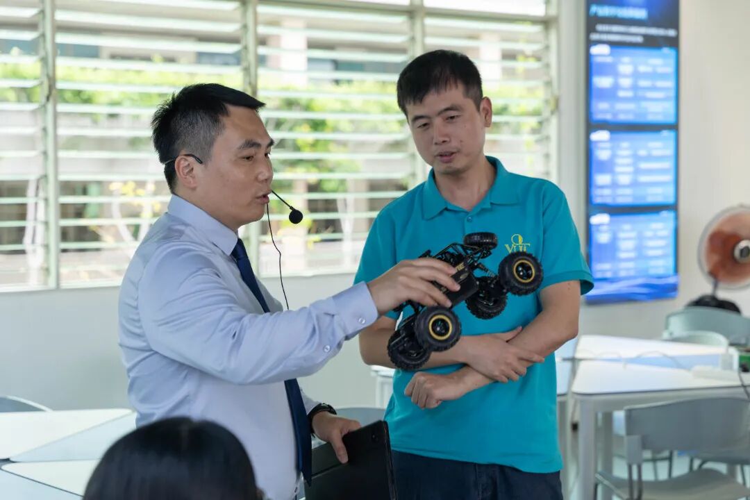 ▲ 副校长兼联合创新产业学院院长郭霏霏、副院长谢云翔、书记林江鸿为新教师们授课