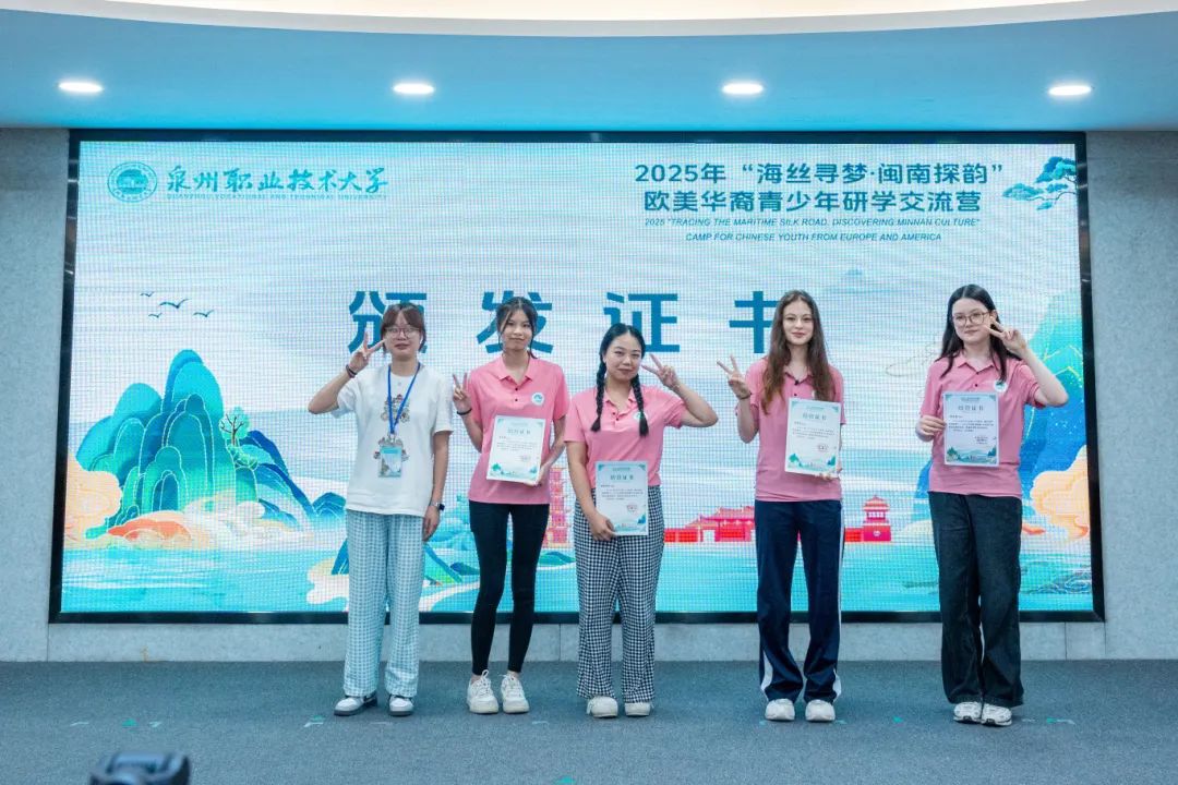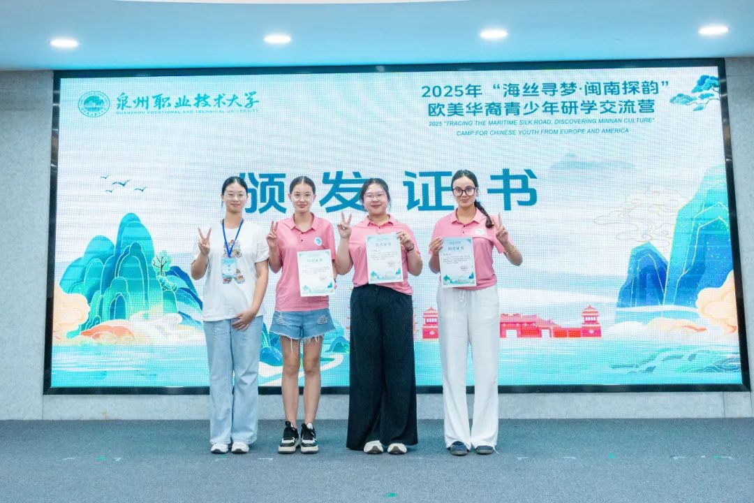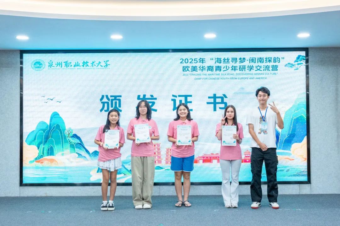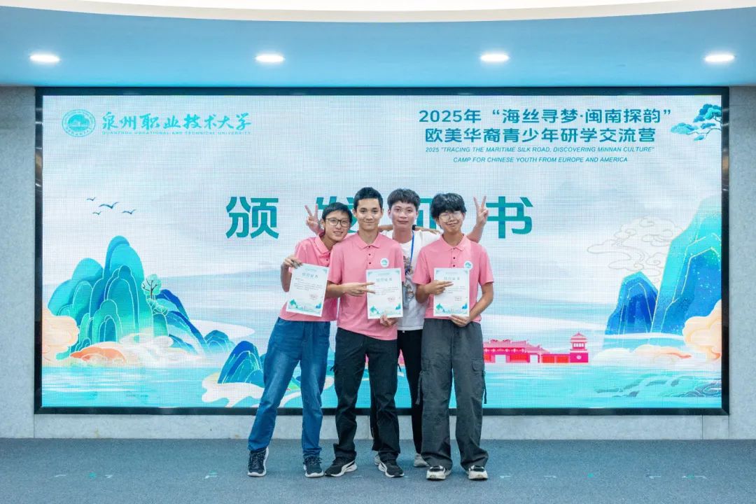 8月2日至11日,“海丝寻梦·闽南探韵”欧美华裔青少年研学夏令营在泉州职业技术大学成功举办。来自德国、美国、西班牙等国家的华裔青少年齐聚“海上丝绸之路”起点城市泉州,通过为期10天的非遗体验、文化探访与互动交流,深度感知闽南文化的独特魅力,完成了一场跨越山海的研学之旅与文化传承实践。