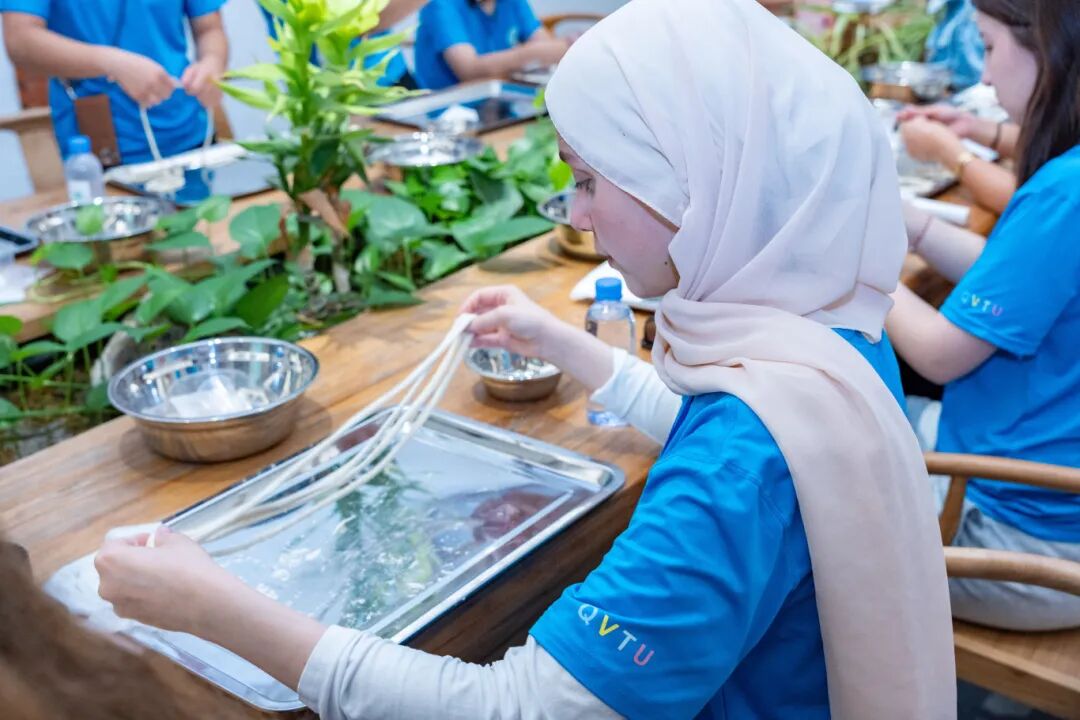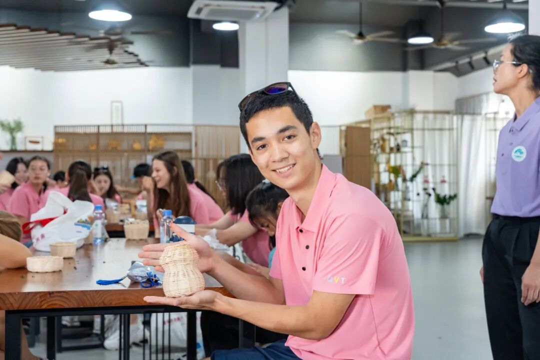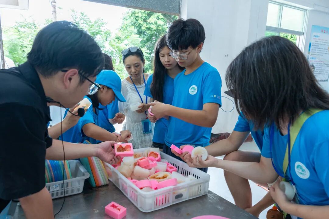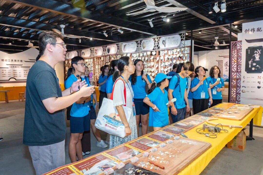 活动以“动手实践”为切入点,带领营员走进闽南非遗工坊,感受传统技艺的温度。在泉港螺钿艺术馆,营员们观赏非遗匠人精雕细琢的螺钿佳作,亲手刻制彩贝片,于丝线珠粒间触摸这项千年技艺的精致;西街珠绣工坊内,跟随非遗大师陈克忍穿针引线,制作桃花扇时,“一针一线皆故事”的匠心令营员赞叹;安溪藤编工坊中,取藤条、学经纬,营员们在非遗传承人指导下勾勒古老技艺的新生图谱;泉港盐场里,下盐田体验制盐、扒盐,参与盐雕DIY,解码闽南盐文化的劳动智慧。