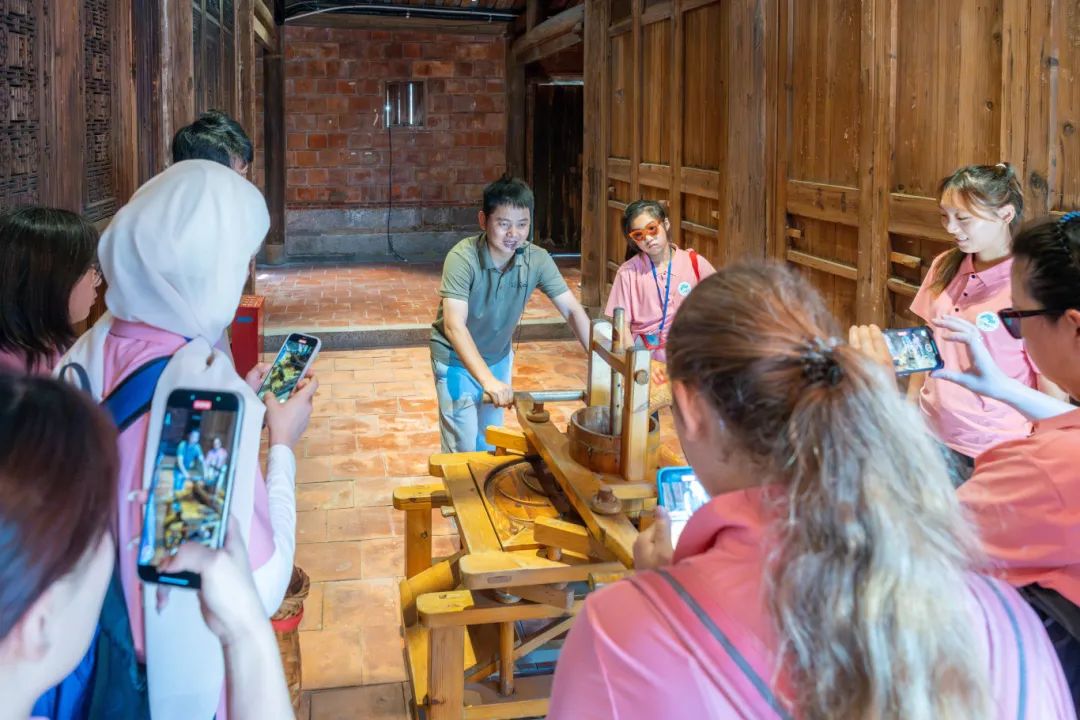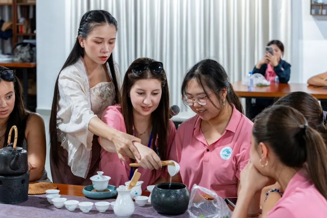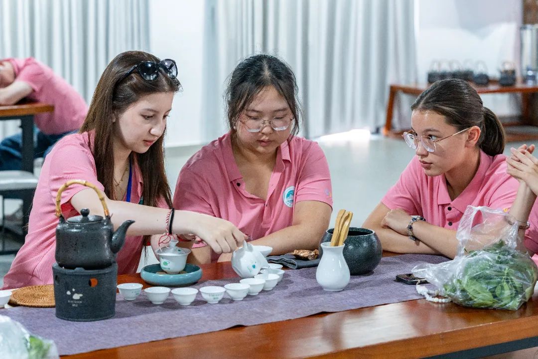 传统文化在多元场景中焕发新生。书法体验环节,营员们提笔临摹,于横竖撇捺间感受汉字结构的古典意蕴;齐声学唱闽南语经典《爱拼才会赢》,通过方言发音纠正与歌词解读,深化对“爱拼敢赢”精神的理解;安溪溪禾山茶园内,采茶、制茶、习烹茶奉茶之礼,营员们在茶香氤氲中体悟“谦敬”的待客哲学;来旺良品堂中,手作面线、体验传统花轿,解码“闽南婚俗六礼”的烟火温情。