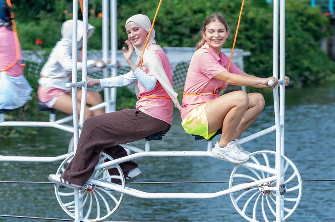 十日时光,因共同体验而温暖。开营破冰游戏中,营员们通过趣味任务打破陌生;聚龙岛飞盘竞技、水上闯关,运动场羽网飞扬,汗水与笑声交织;暮色下的烧烤围炉、夜空中的篝火烟花,将青春的热烈定格在泉州夏夜。