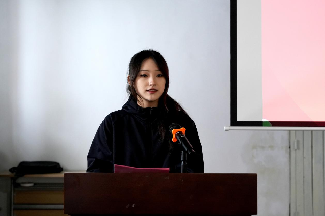 学生代表季文婧感谢下洋镇政府、溪塔村两委及村民的支持。她提到初到下洋镇时,“乡村振兴”还只是书本上的概念,后来通过了解镇政府的规划,她才懂了这项工作的系统性,又从村干部、“蜜蜂叔叔”身上,看到了乡村振兴的鲜活细节。她分享走访林下经济馆、体验知青文化与功夫茶的经历,称将以数字媒体技能,在比赛中讲好下洋故事、推特色资源,让青春在此绽放。