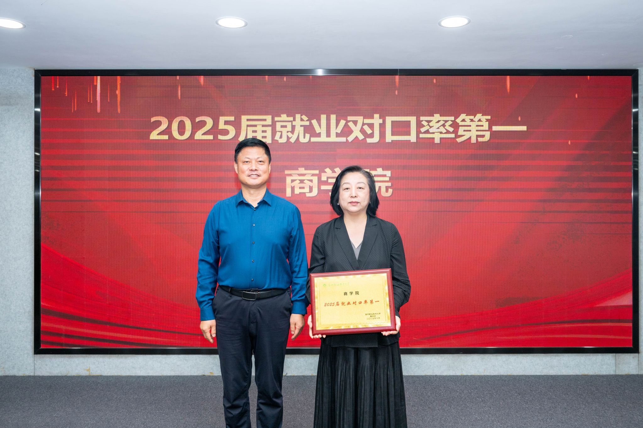 会议对2025届就业工作成绩突出的学院进行了表彰,张建军为获奖学院颁奖。
