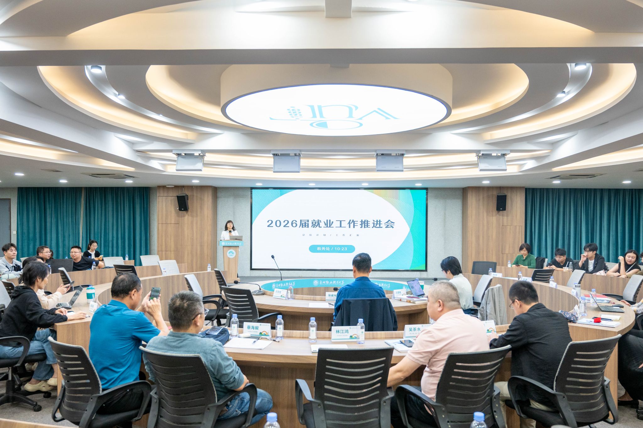 10月23日,泉州职业技术大学召开2026届就业工作推进会,总结2025届就业工作并为2026届毕业生就业工作谋篇布局。副校长张建军、郭霏霏,校长助理、教务处处长苏康敏,教务处及各二级学院领导、专业负责人、辅导员参加会议。