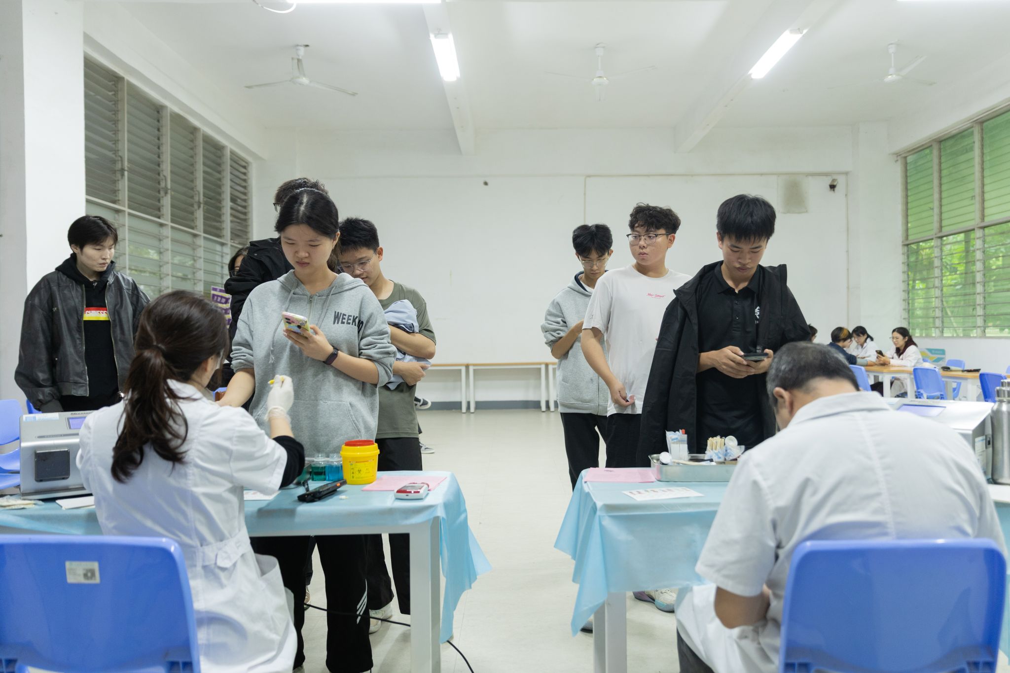 活动现场秩序井然,温情流淌。志愿者们各司其职,悉心引导;医护人员专业细致,耐心操作。同学们在志愿者的引导下,依次完成登记、体检、验血等流程,在等候区静静等待献出自己的一份爱心。