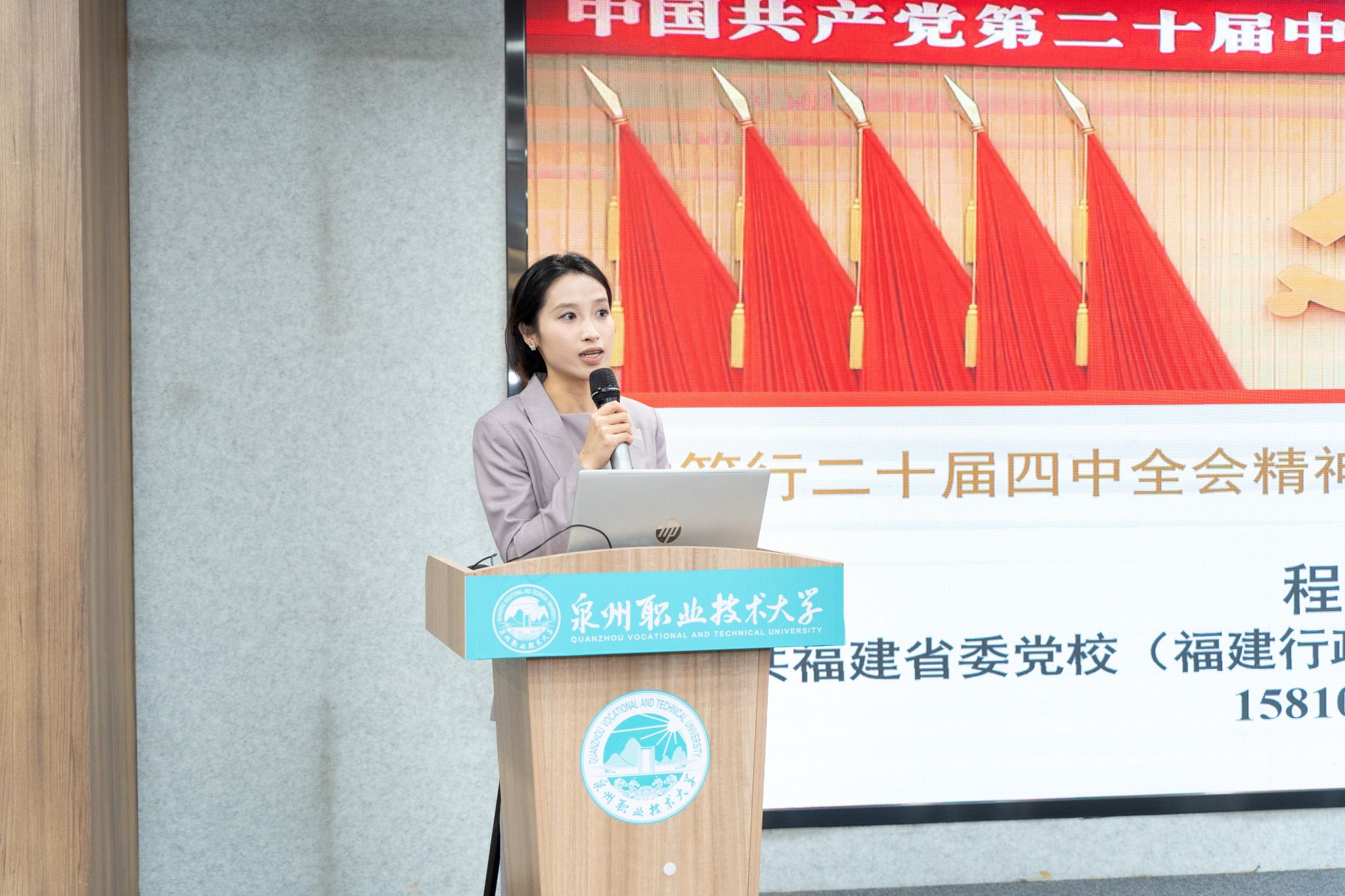 让我们更加紧密地团结在以习近平同志为核心的党中央周围,以党的二十届四中全会精神为指引,锐意进取,实干争先,为开创泉州职业技术大学更加美好的未来,为谱写中国式现代化崭新篇章而努力奋斗。