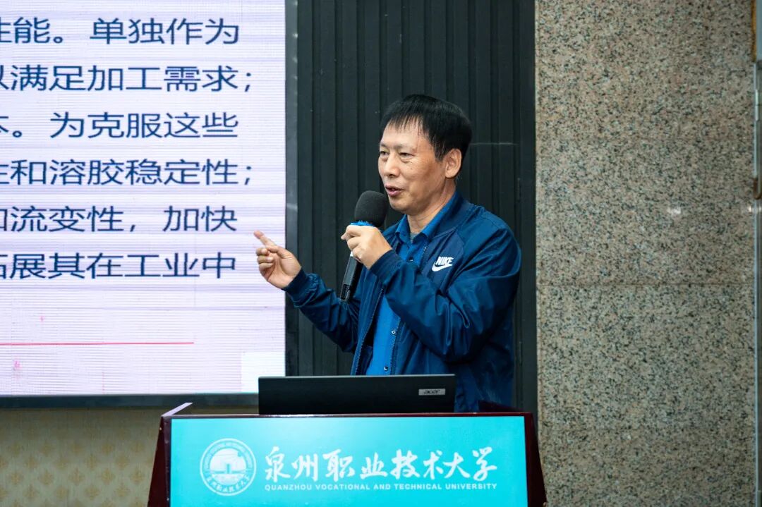 晋江市科技局副局长张晨亮、晋江市技术经理人协会秘书长卢衍帮,以及来自同济大学、西北大学、辽宁石油化工大学等高校的专家学者和多家企业代表出席活动。泉州职业技术大学党委书记傅志雄、相关学院负责人及师生代表100余人参加论坛。