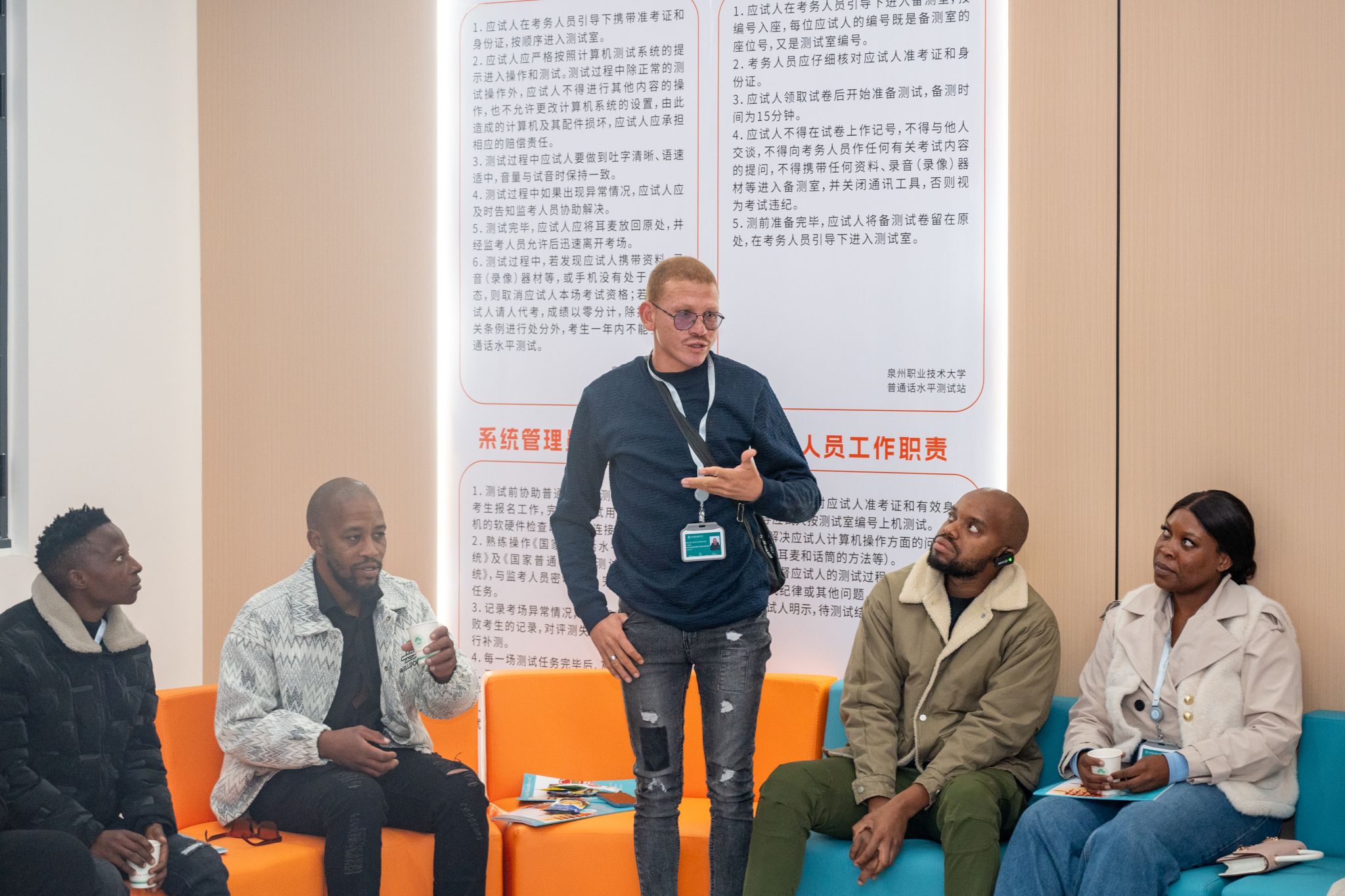 在泉州,9位像Conrad一样从南非万里赶来的青年,都是中国-南非国际市域政产教联合体合作项目的首批学员。他们中有经营运动鞋清洁服务的Sipho、有渴望学习中国规模化生产技术的Pearl Khoza、有在影视行业工作却想熟悉电商物流的Ongeziwe Mteto等。未来,课堂上,他们都将从“你好”“谢谢”“再见”“123上车”等开始,在泉大学习语言与文化,电子商务实践与管理,产品开发和市场推广。