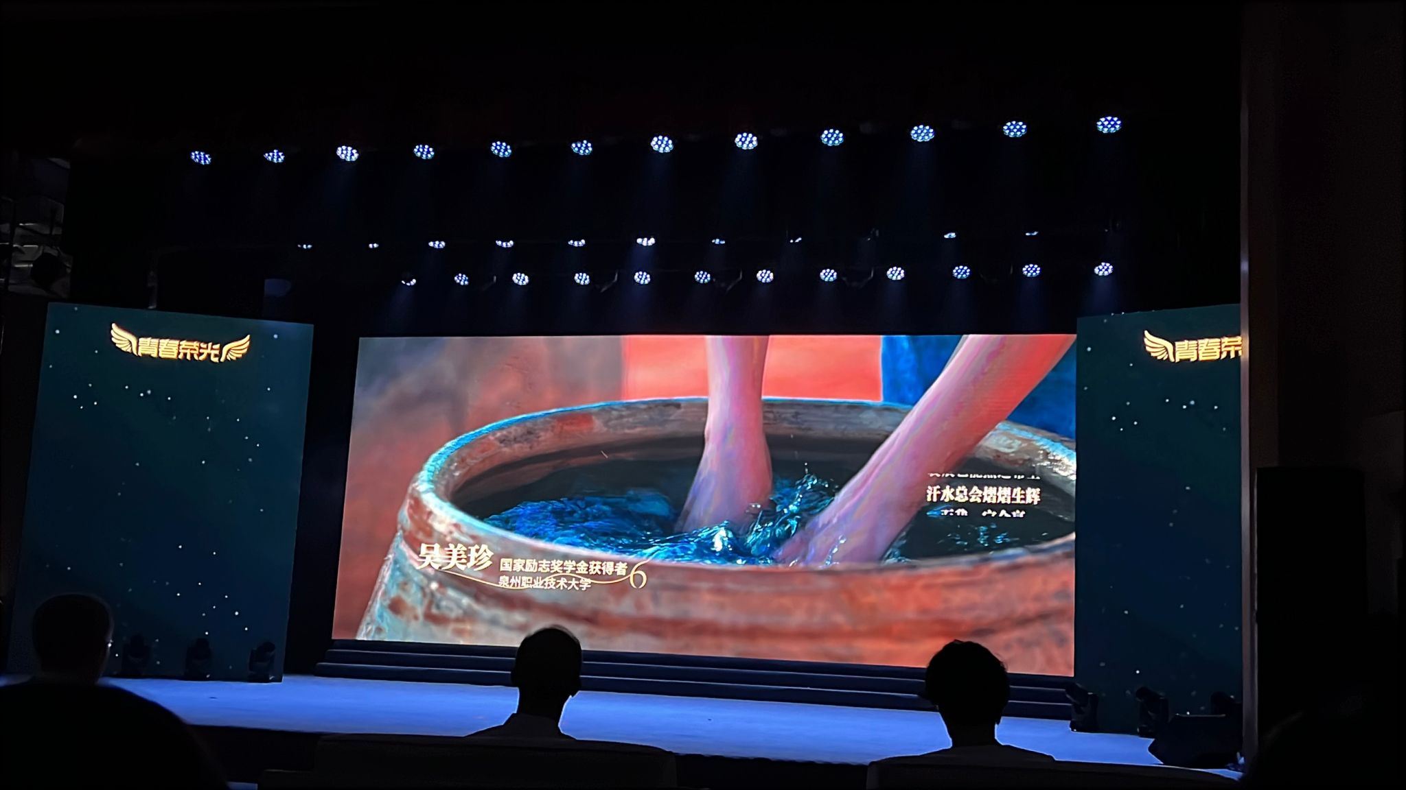 本届颁奖大会以“青春无界 热爱成风”为主题,通过“追风”“乘风”“御风”三大篇章,为来自省内高校、中职学校的2024年国家奖学金、国家励志奖学金获奖学生代表颁奖。我校党委副书记/副校长蔡金佩应邀出席,学生资助管理中心黄婷婷带队参加本次颁奖大会,2021级软件工程技术专业白伟锋作为国家奖学金获奖学生代表上台领奖。