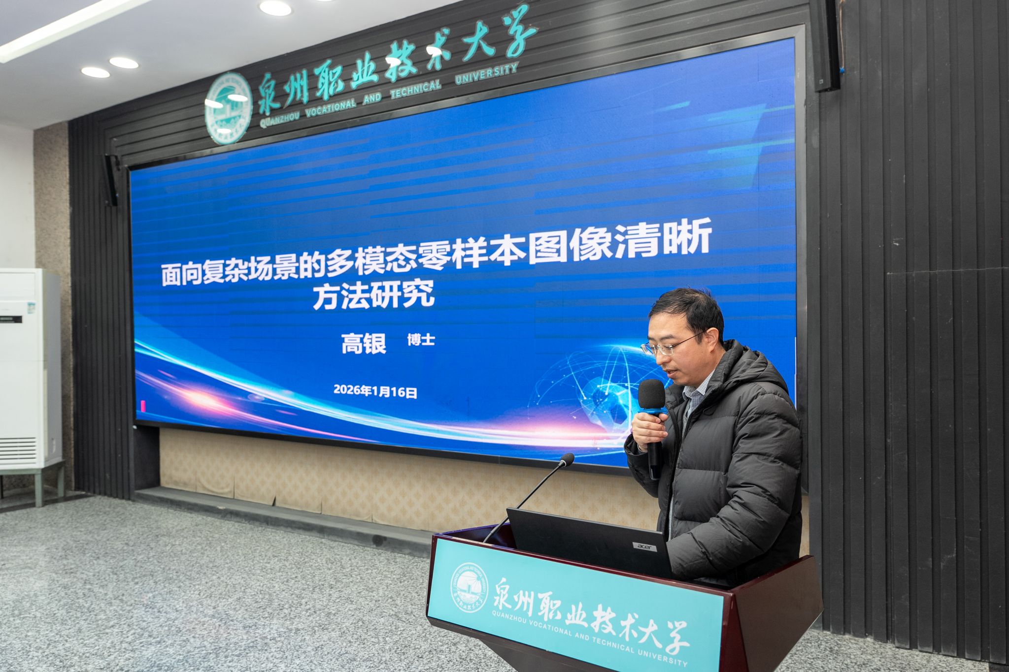 ▲ 福建省“科创中国” 博士创新站、联合创新产业学院高银博士作《面向复杂场景的多模态零样本图像清晰方法研究》主题分享