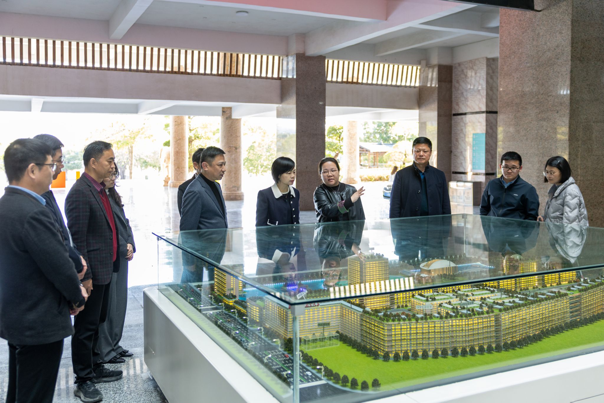 在我校校长吴滨如、党委书记傅志雄的陪同下,陈丽蓉一行先后参观了生态校园沙盘、艺术设计展厅、电商直播基地、数智产教融合展厅及行云新能源汽车产业学院等教学科研场所。参观期间,校方围绕学校办学沿革、校企协同育人机制、专业群建设成效及数智化人才培养模式等方面作系统介绍。