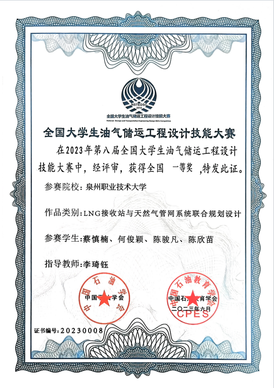 竞赛驱动赋能。构建 “院级-校级-市级-省级-国家级”五级竞赛体系,以各级各类技能竞赛为牵引,为学生搭建全方位、多层次的科创实践平台。在院级层面,举办“小小化学家”实验技术大赛、拆“泵”专家比赛、化工设计大赛、化学实验创新设计大赛等技能竞赛,通过反复竞赛锻炼,磨砺学生的实践创新能力与精益求精的工匠品质。积极组织学生参加中国国际大学生创新大赛、全国大学生化工设计竞赛、全国大学生油气储运工程设计技能大赛、“挑战杯”福建省大学生课外学术科技作品竞赛等赛事,以竞赛驱动学生提升实践创新能力,为学生的职业发展和科研探索奠定坚实基础,在各类学科竞赛和创新创业活动中表现优异,荣获国家级和省级奖项30余项,如第一届全国大学生化工HSE创新设计大赛特等奖、第七届中华职业教育创新创业大赛一等奖、全国大学生油气储运工程设计技能大赛一等奖、中国国际大学生创新大赛(2024)国家铜奖和省赛金奖、第四届福建省大学生化工设计大赛一等奖等。