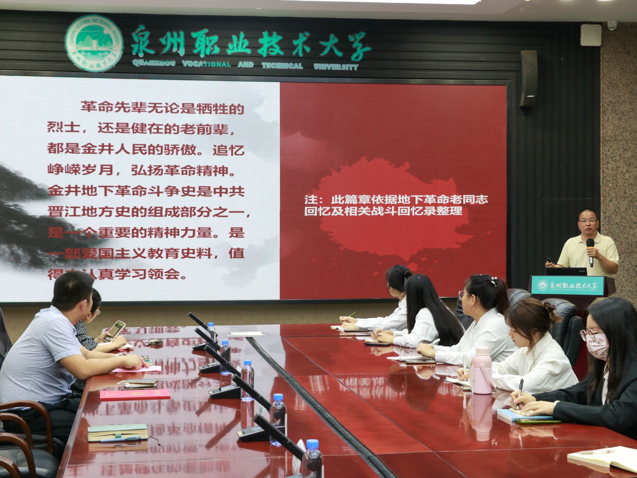 ▲ 书院红色导师 谢清源入校分享《金井涛声》一书