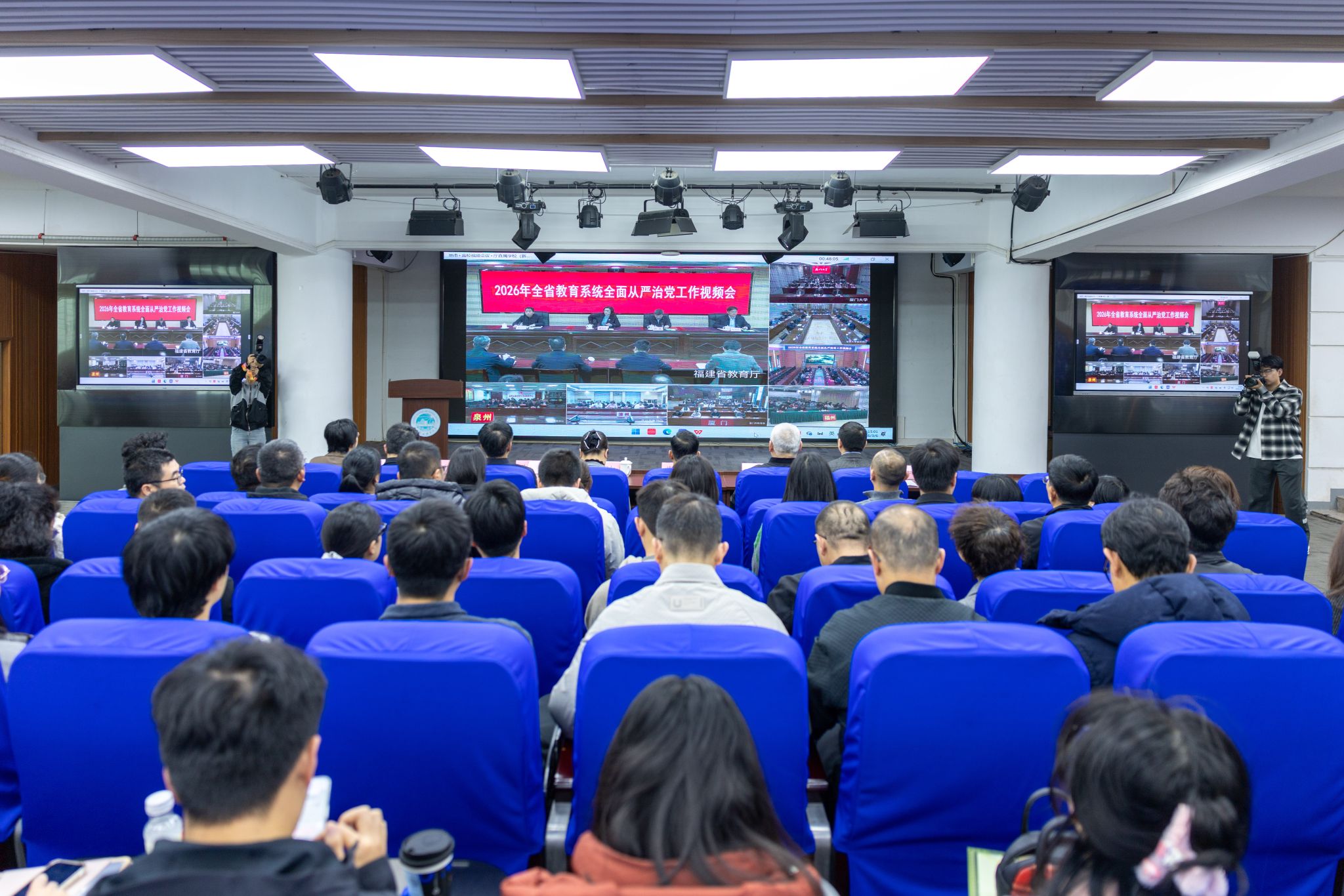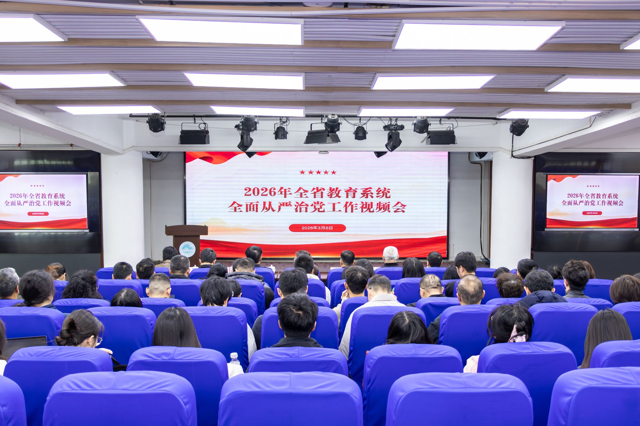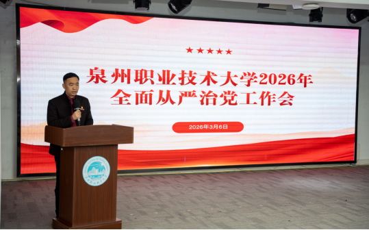 3月6日,泉州职业技术大学党委组织全体相关人员集中收看2026年全省教育系统全面从严治党工作视频会。为迅速贯彻落实上级会议精神,部署我校今年全面从严治党重点任务,学校紧接着召开泉州职业技术大学2026年全面从严治党工作会议。
