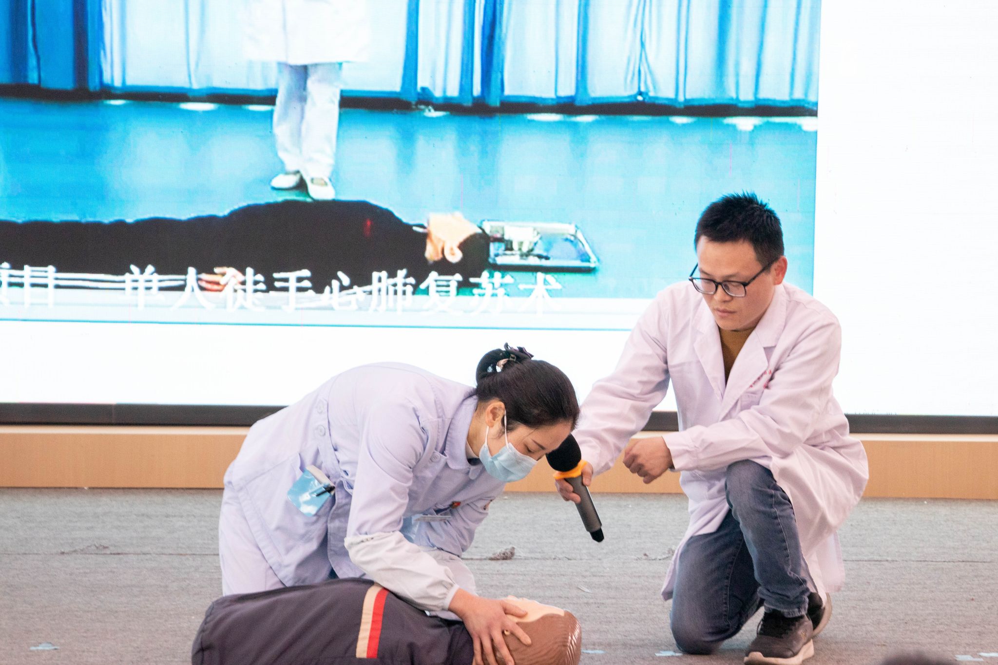 面对突发状况,科学的急救技能至关重要。医院急诊科负责人王文彬主治医师依托模拟人教具,对心肺复苏(CPR)操作流程进行标准化演示,重点强调意识判断、呼救技巧及胸外按压的关键细节。在张银凤主管护师的指导下,多位同学上台实操演练,在实践中强化应急救护能力,为校园安全再添保障。