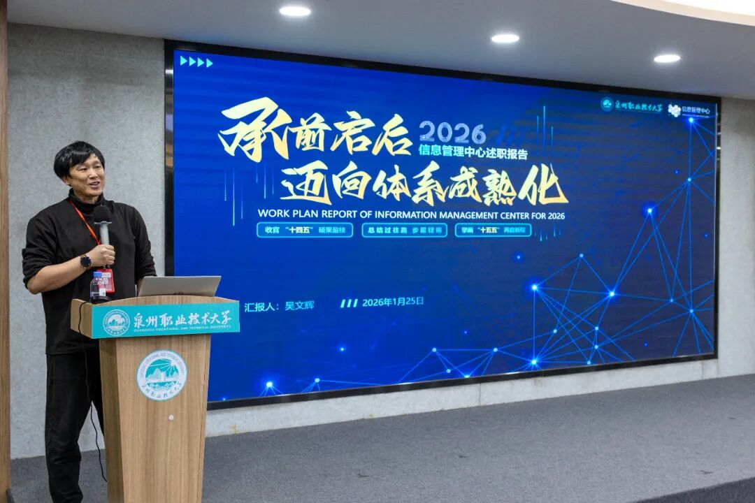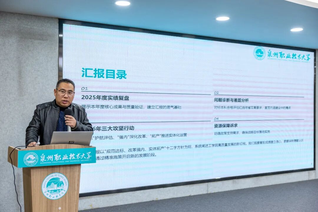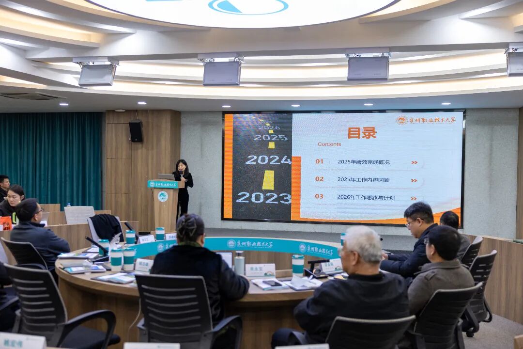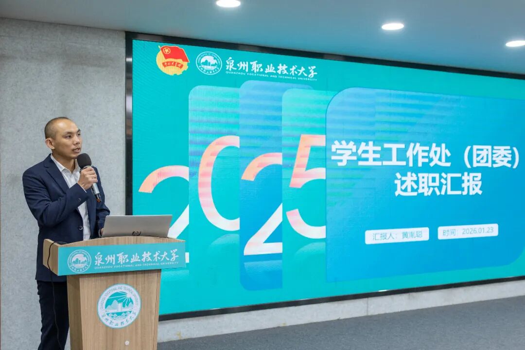 2025年是“十四五”规划的收官之年,泉州职业技术大学成功入选第二期国家“双高计划”,跻身技能型高校“国家队”,学校办学条件、办学水平和办学影响力均取得突破性进展。1月21日至25日,泉大开展2025年度年终述职工作,总结2025年工作中的经验,为2026年工作做好谋篇布局。